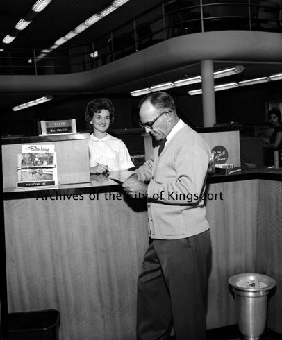 Interior of the Kingsport Federal Savings and Loan Association. The bank was located at 110 East Center Street.