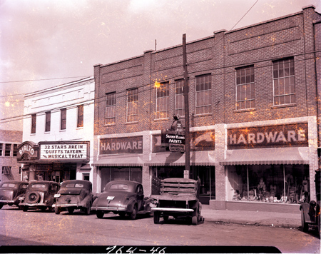 Businesses visible in this image are the Rialto Theatre and Kingsport Hardware Company. This block of buildings was eventually leveled for the construction of a city parking lot.