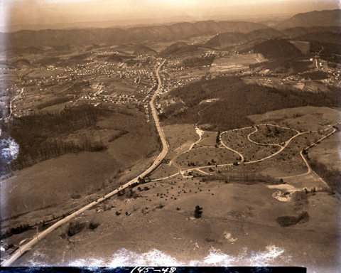 Aerial view of Lynn Garden looking North. The cemetery in the right-center of the image is Oak Hill. When the image was captured, the cemetery was known as the Kingsport Cemetery.