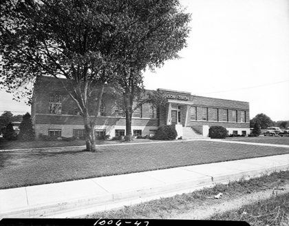 Exterior of Mason & Dixon Lines Incorporated. The trucking company was located on Eastman Road. E. Ward King was president and treasurer of the company; Stewart T. King was the vice president; Lloyd W. Pendleton was the secretary; D. Ruth Pickering was the assistant secretary.