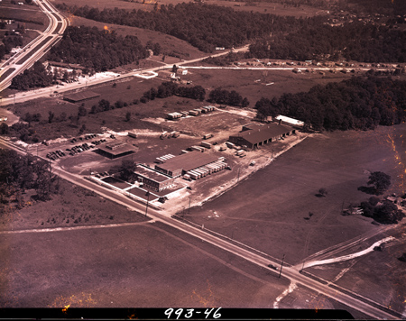 Aerial view of Mason & Dixon Lines Incorporated headquarters and the surrounding area. The trucking company was located near the intersection of North Eastman Road and the Johnson City Highway, now named Fort Henry Drive. E. Ward King was president and treasurer of the company; Stewart T. King was the vice president; Lloyd W. Pendleton was the secretary; D. Ruth Pickering was the assistant secretary.