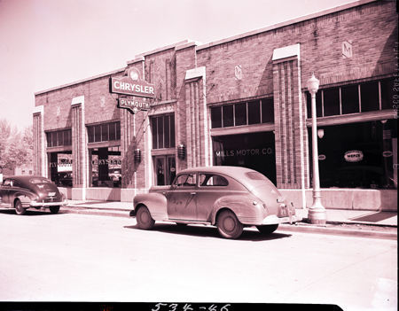 Exterior view of Mills Motor Company, located at 223 Commerce Street. William H. Mills was president, and Jas A. Holtzclaw was the manager.