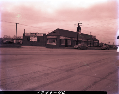 Exterior view of Peggy Ann Coffee Shop, Buck Grocery Store, Standard Brands, Armour Drug Store, and Tennessee Rulane Company. These businesses all shared a building on the Bristol Highway, now named Center Street. Peggy Ann Coffee Shop, located at 1459 Bristol Highway, was owned by Earl J. Harrell. Buck Grocery Store, located at 1457 Bristol Highway, was owned by Daniel P. Buck. Standard Brands, located at 1455 Bristol Highway, was managed by John Proffit. Armour Drug Store, located at 1453 Bristol Highway, was owned by George Armour. Tennessee Rulane Company, located at 1451 Bristol Highway, provided butane gas sales and services. R.M. Huntsman was the vice president; Joseph P. Thompson was the office manager.