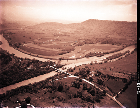 View of Rotherwood Hills, Ridgefields, and the north and south branches of the Holston River.