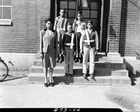 Members from a local troop of the Safety Council. Although unknown, the boys probably lived in Kingsport’s Riverside Community and were probably standing outside the Douglass School.