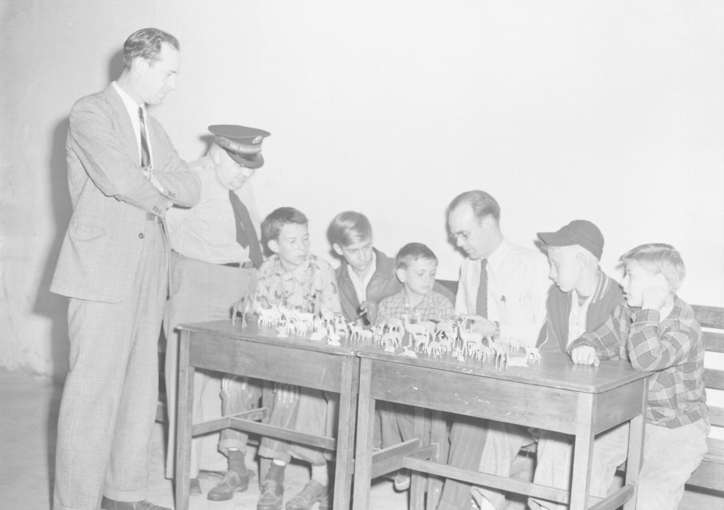 Kids and Adults learning about carving animals at the Salvation Army.