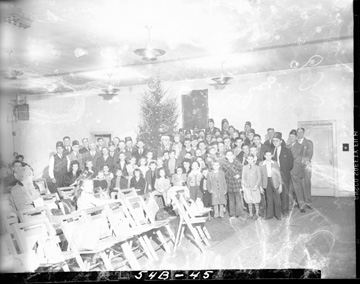 A Christmastime gathering of the Shrine Club members and crippled children.
