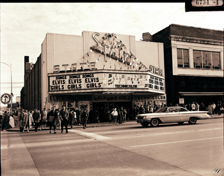 Street scene with the State Theatre showing Elvis’s Girls Girls Girls.