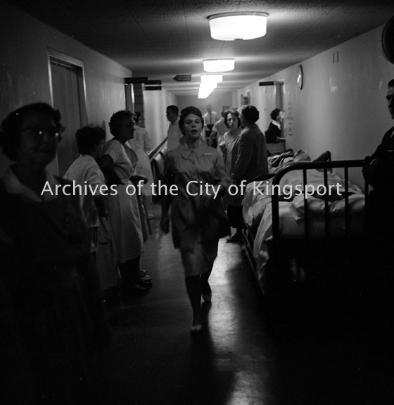 A scene from Holston Valley Community Hospital following an explosion at the Aniline division of Tennessee Eastman on October 4th, 1960. Fifteen people were killed as a result of the explosion and 200 more were injured.