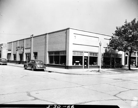 Exterior view of The Snack Shop and Kingsport Office Supply Company. The Snack Shop was located at 211 Commerce Street and was owned by George Karakas. Kingsport Office Supply was located at 200-202 East Market Street and was owned by C.K. Koffman and S.E. McAmis.