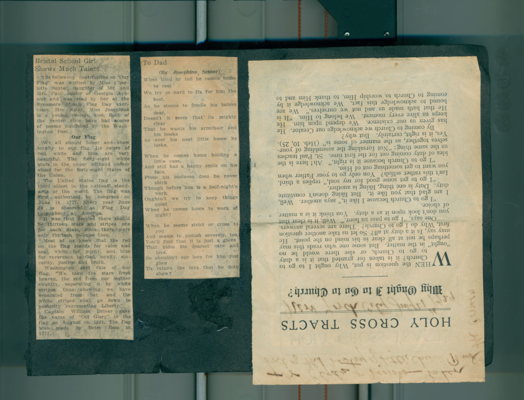 The scrapbook details the early years of her marriage to Clyde Barnett and her involvement in various social groups such as the Woodlawn Garden Club and the Palette and Brush Club later in life. The scrapbook contain newspaper clippings, photographs, correspondence, and event programs.