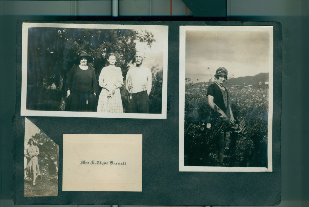 The scrapbook details the early years of her marriage to Clyde Barnett and her involvement in various social groups such as the Woodlawn Garden Club and the Palette and Brush Club later in life. The scrapbook contain newspaper clippings, photographs, correspondence, and event programs.