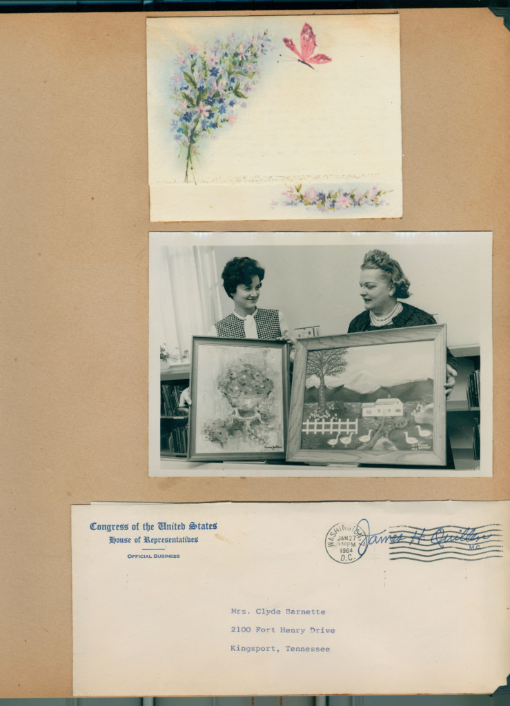 The scrapbook details the early years of her marriage to Clyde Barnett and her involvement in various social groups such as the Woodlawn Garden Club and the Palette and Brush Club later in life. The scrapbook contain newspaper clippings, photographs, correspondence, and event programs.