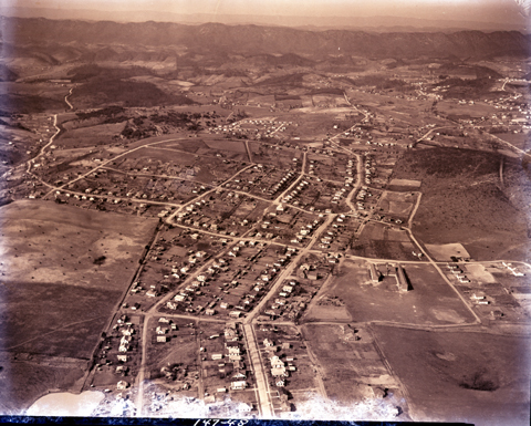 Aerial view of Kingsport’s West View neighborhood. When this image was captured, the neighborhood had not yet been annexed into the city. The large building in the image’s lower right is today called Theodore Roosevelt Elementary School. In 1948 it was part of the Sullivan County School system and called West View Elementary School.
